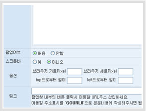 ÆË¾÷â Á¦¸ñ, ½ºÅ©·Ñ¹Ù, x,yÁÂÇ¥À§Ä¡, ÆË¾÷¿©ºÎ µîÀÇ ¿É¼Ç±â´ÉÀÌ ´Ù¾çÇÕ´Ï´Ù.